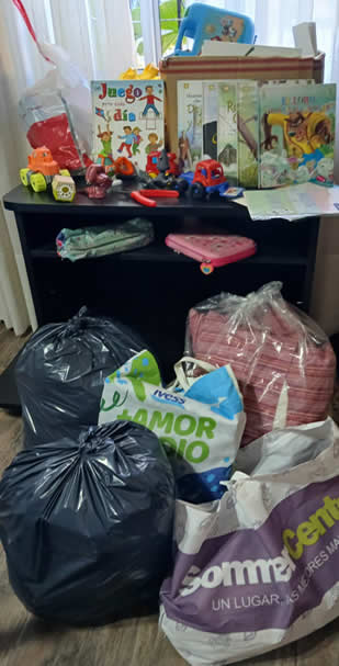 El 18 de agosto se le entregó a Dr Luis Ganim, presidente del Movimiento Puente, regalos para entregar a Ser Prójimo de Salta: 50 libros para pintar y cuentos, ademas 50 ta te ti y para los niños de Catequesis del Siambon en Tucumán 80 paquetitos con golosinas.