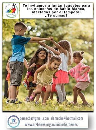 Como gesto fraterno y solidario, a fin de colaborar con la Arquidiócesis de Bahía Blanca, invitamos a todos a juntar juguetes, en cercanía del Día del Niño.