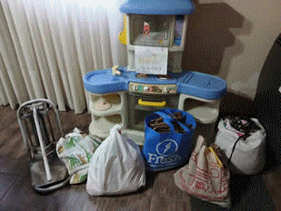 "Por favor, traer todos los juguetes juntados agrupándolos en bolsas de consorcio grandes y resistentes, cerradas". Muchas gracias!