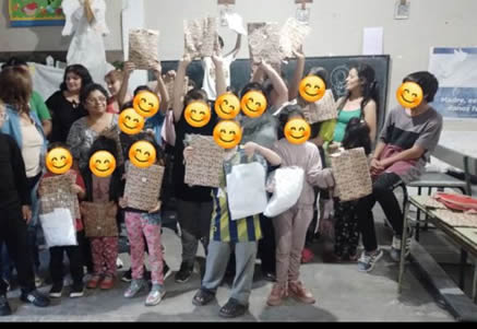 El 6 de abril, fue entregado al presidente del Movimiento Puente, Dr Luis Ganim, que viaja a Tucumán, 120 bolsitas para el Encuentro Vocacional de Jóvenes que se realizará en esa provincia ... Simulan ovejitas.