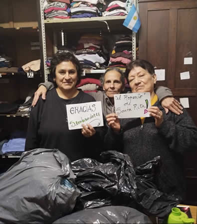 El 30 de junio, se entregaron bolsas con ropa de mujeres, varones, niños, calzado variado y acolchado al Hogar San Juan Calabria.